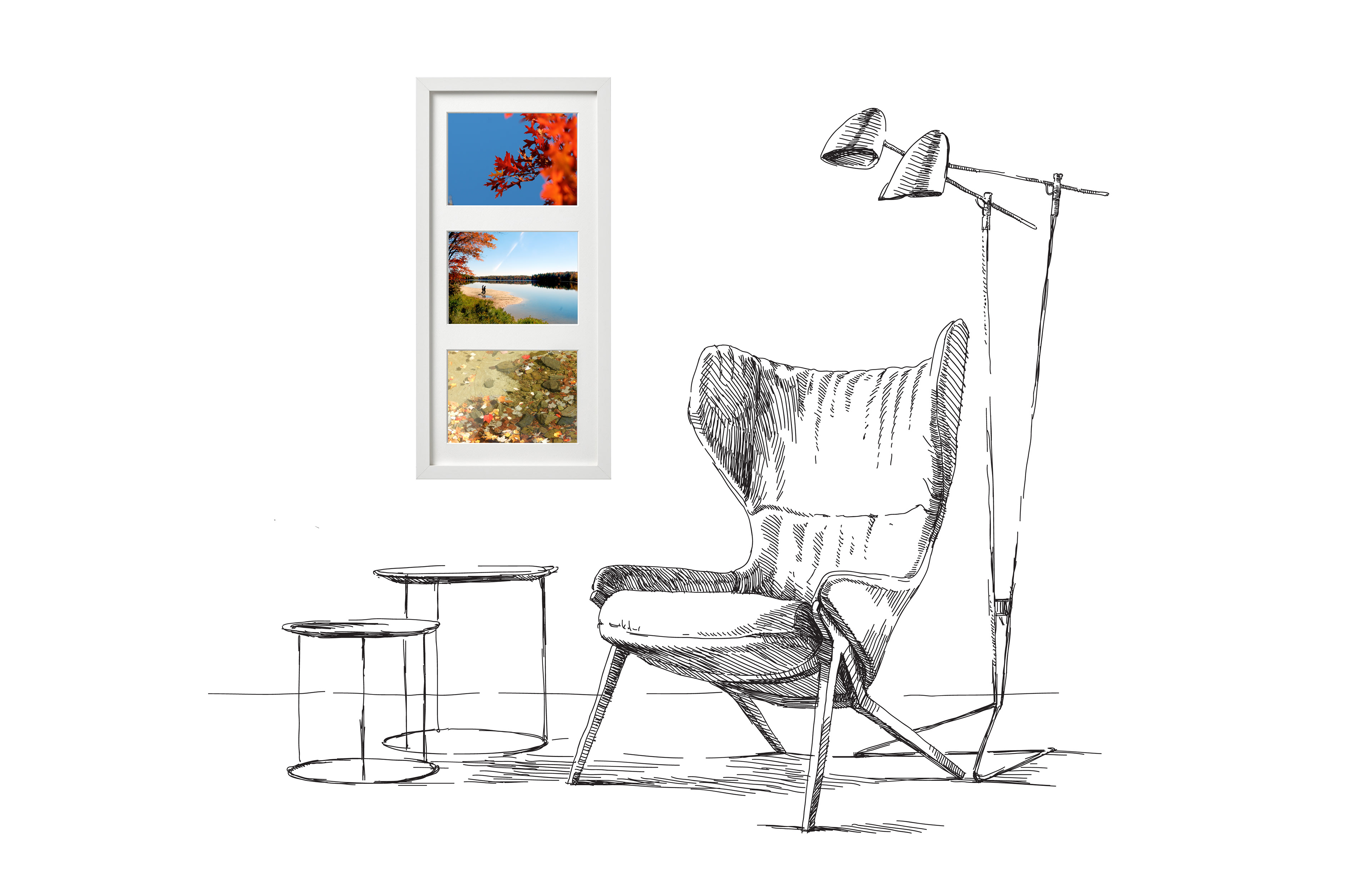 1 frame with 3 photos Frame size: 19 3/4" H x 9" W Photo size: 5" H x 7" W