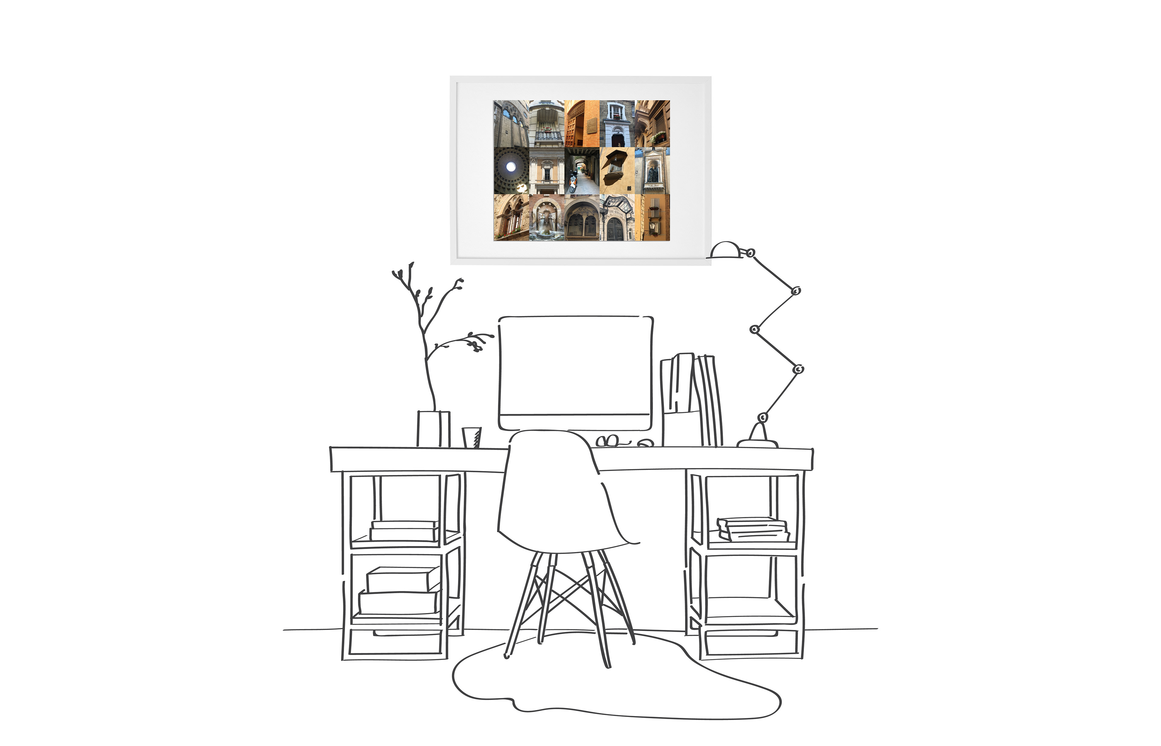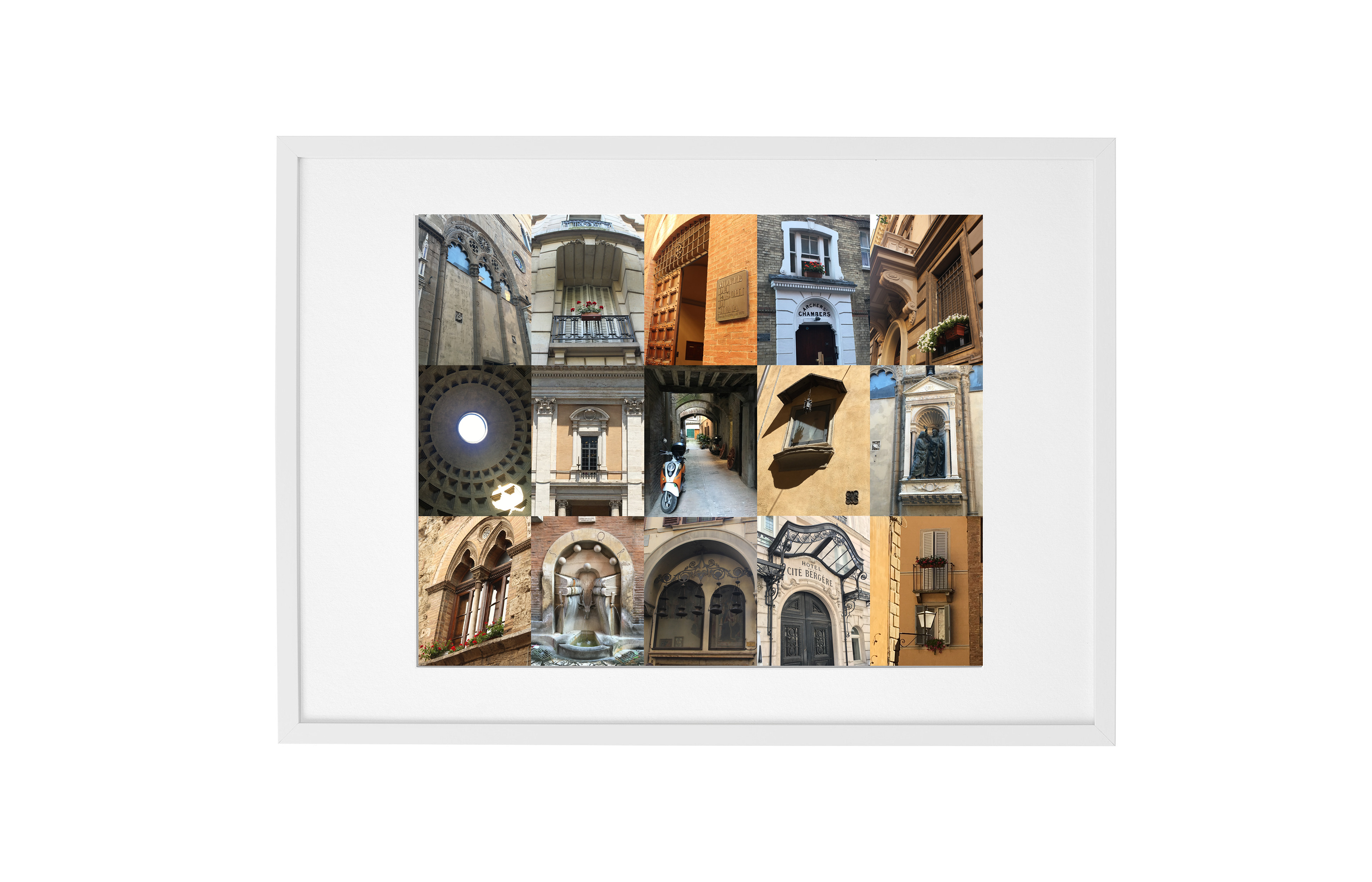 1 frame with a photo collage of 15 photos Frame size: 19 ¾ H x 27 ½ "W Photo collage size: 16" H x 20" W